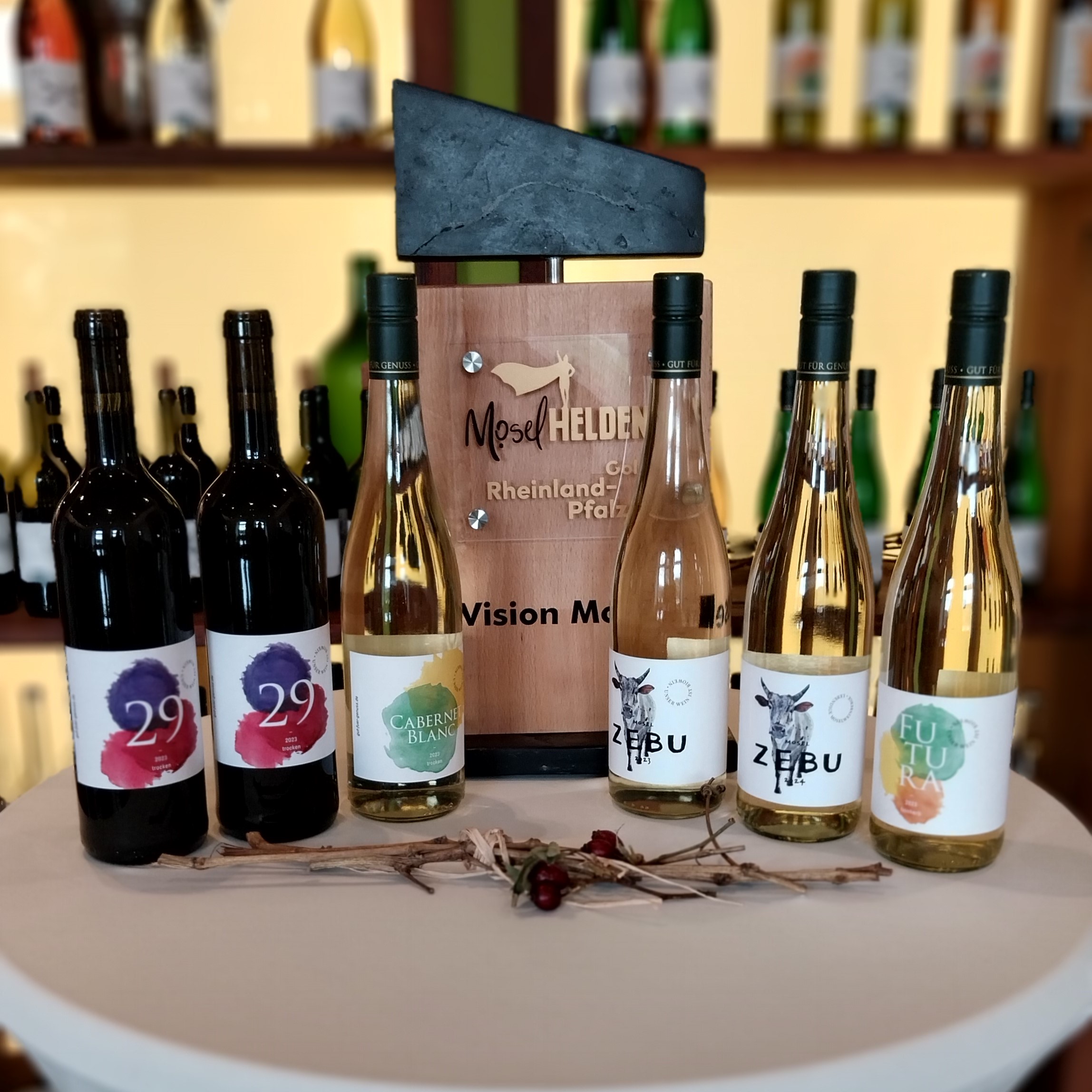 Um die Besonderheiten der verschiedenen Jahrgänge zu zeigen haben wir vom Rotwein 29 und vom Zebu je zwei verschieden Jahrgänge dabe.